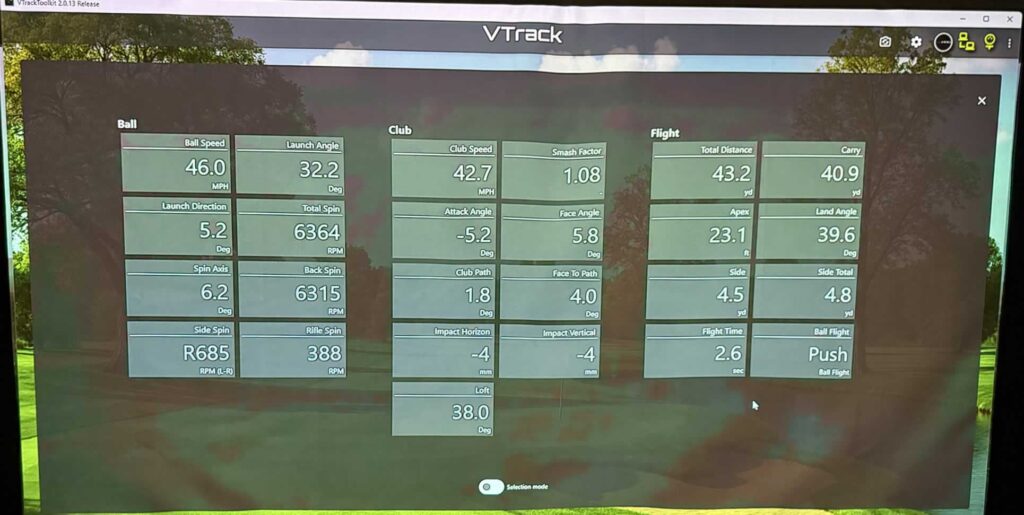 The video replay will repeat over and over until you place a ball in the hitting area and the Vtrack picks it up. Once that happens the video goes away and the system is ready for your next shot. It’s an easy way to tell that the system is ready.